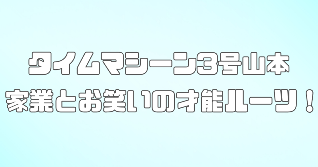 お笑いコンビ「タイムマシーン3号」の山本浩司さん。 独特のキャラクターと面白さで多くのファンを魅了していますよね。 そんな山本さんの実家には意外な秘密があったんです。 今回は、タイムマシーン3号山本さんの実家の家業と、そこから垣間見えるお笑... -