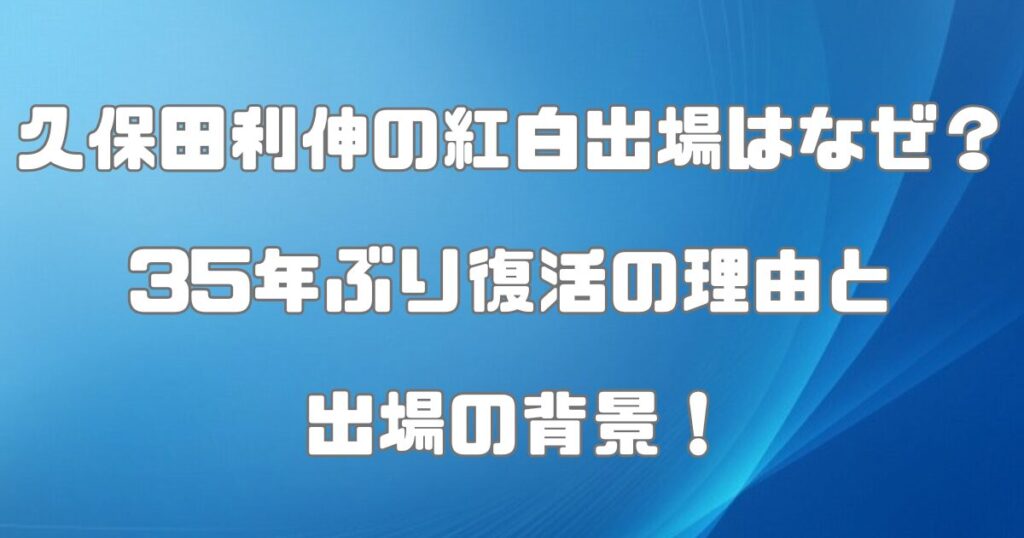 2025年の紅白歌合戦に久保田利伸さんが出場することが発表され、大きな話題となっています。 久保田利伸さんといえば、日本のR&Bシーンを代表するレジェンドアーティストですよね。 そんな久保田利伸さんが紅白に出場するのはなぜなのでしょうか? こ... -