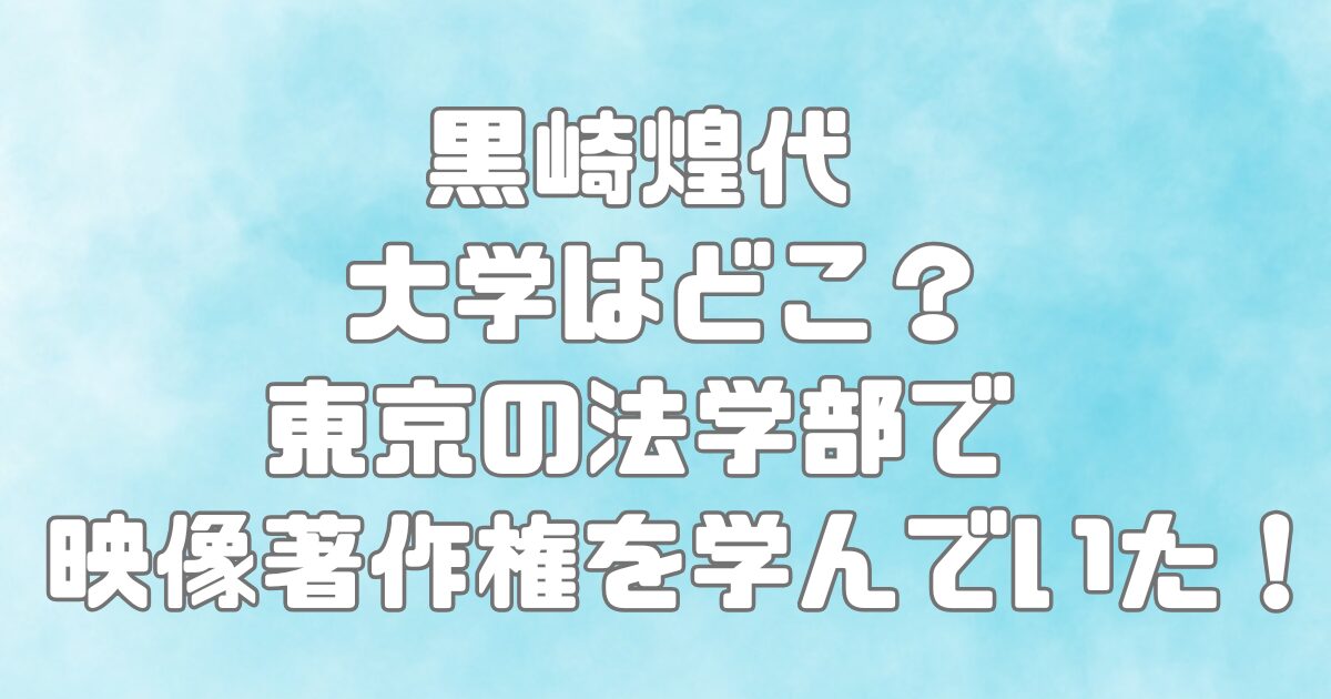 黒崎煌代さんの大学について調査した結果、大学名は非公表ですが、東京の大学の法学部に進学し、映像関係の著作権を学んでいたことが分かりました。