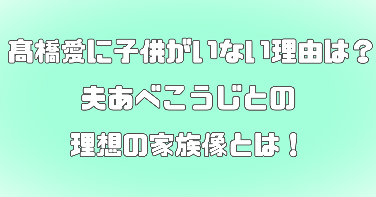 今回は、髙橋愛さんに子供がいない理由と、夫あべこうじさんとの理想の家族像について調査しました。